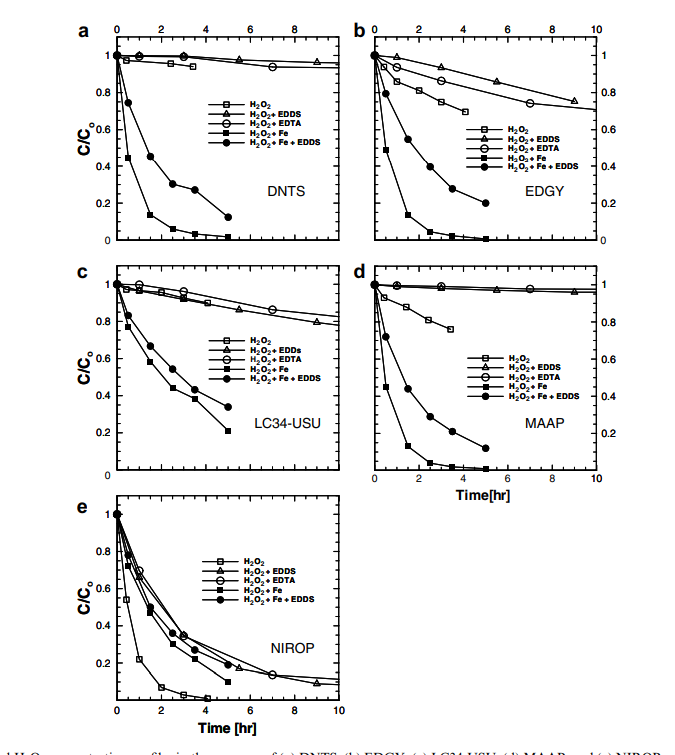 EDDS組:加入EDDS后,H?O?分解速度直接慢10倍(比如從1.2小時?¹降到0.2小時?¹),效果比傳統(tǒng)EDTA強近一倍!